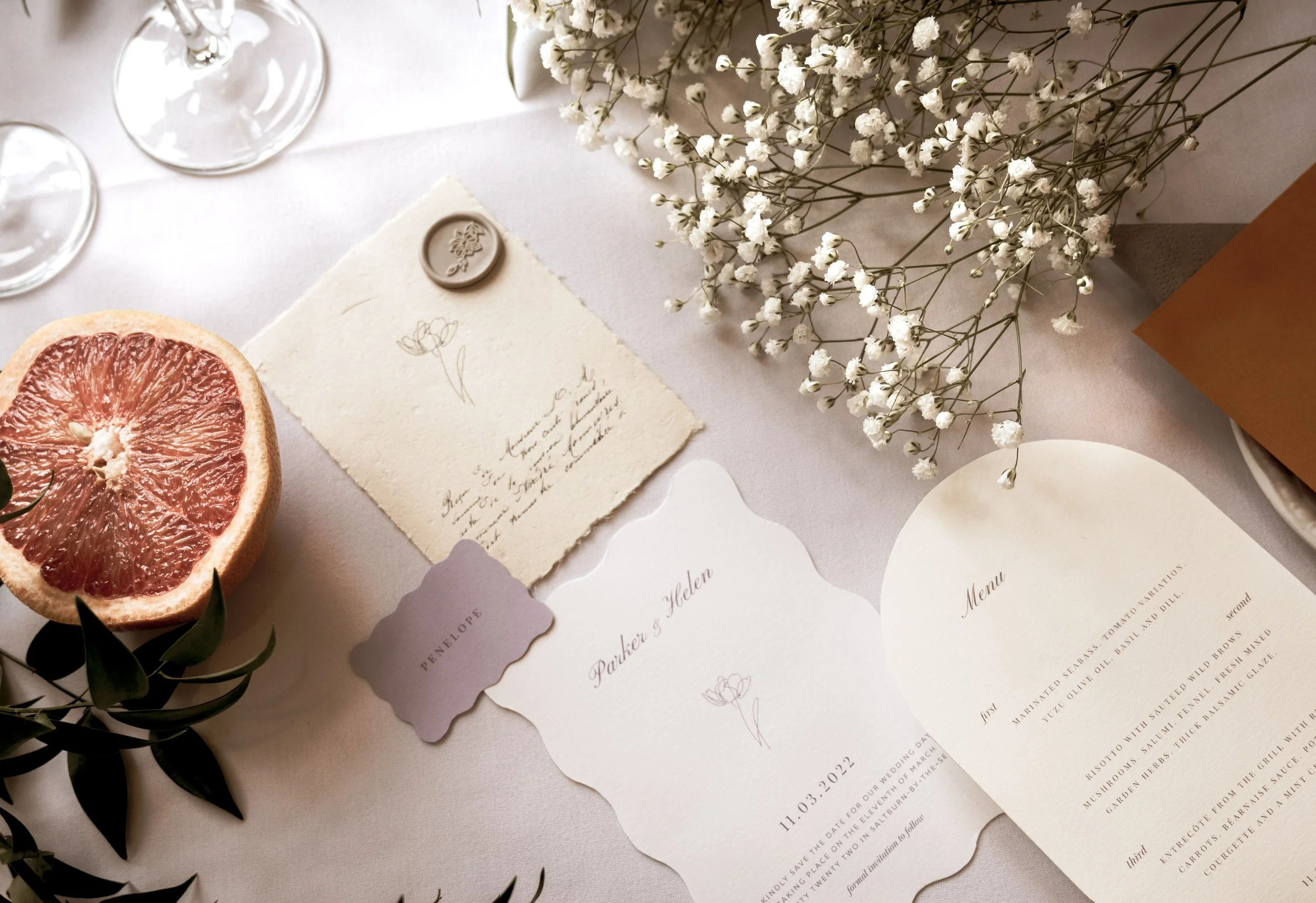 Please note that there is a full range of paper textures, colours and print techniques available for all the items within this collection. We will share more options with you during the customisation process. Samples can be purchased upon request.